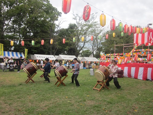 ふるさと祭りのスタートは、和太鼓の競演です。