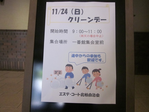 11月24日(日)9:00から、秋季クリーンデーが実施されました。 暑かった夏もようやく終り、木々の緑も色褪せてきました。 そのような状況の中、37名(うち子供1名)の方が参加されました。 今回のクリーンデーは、落ち葉の収集・廃棄作業がメインとなりました。 穏やかな天候の中、参加者の皆様が、それぞれ積極的に活動されたこともあり、 予定より、早めに作業を終了することができました。 参加者ならびに環境委員の皆様、大変お疲れ様でした。